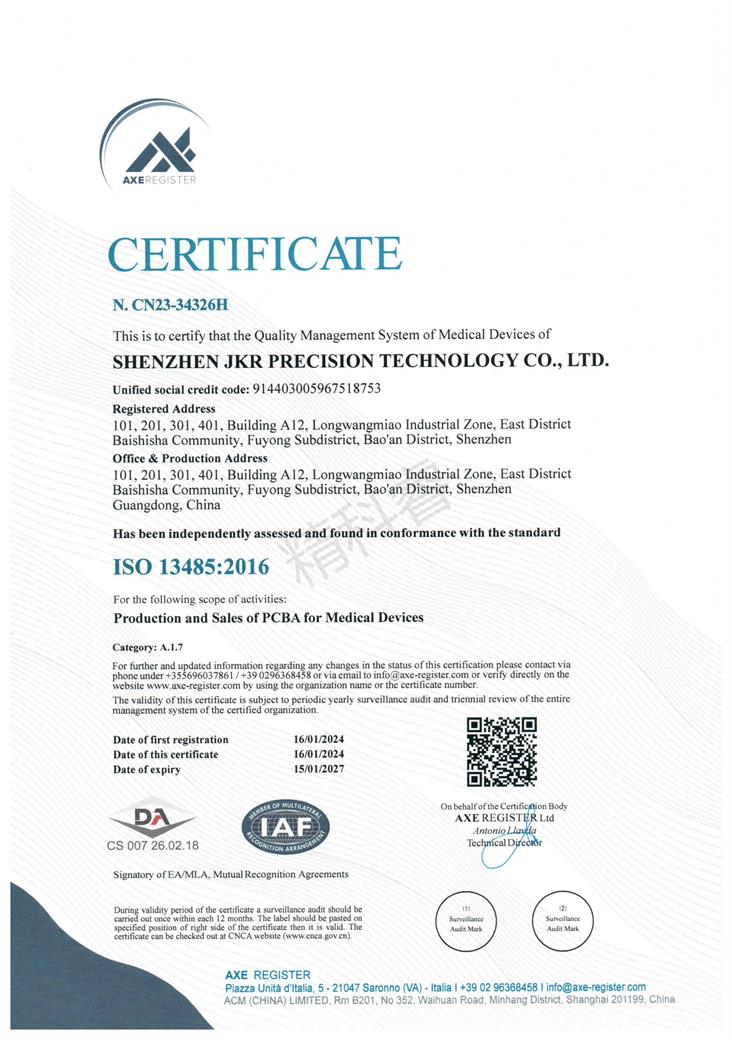 ISO 13485:2016证书