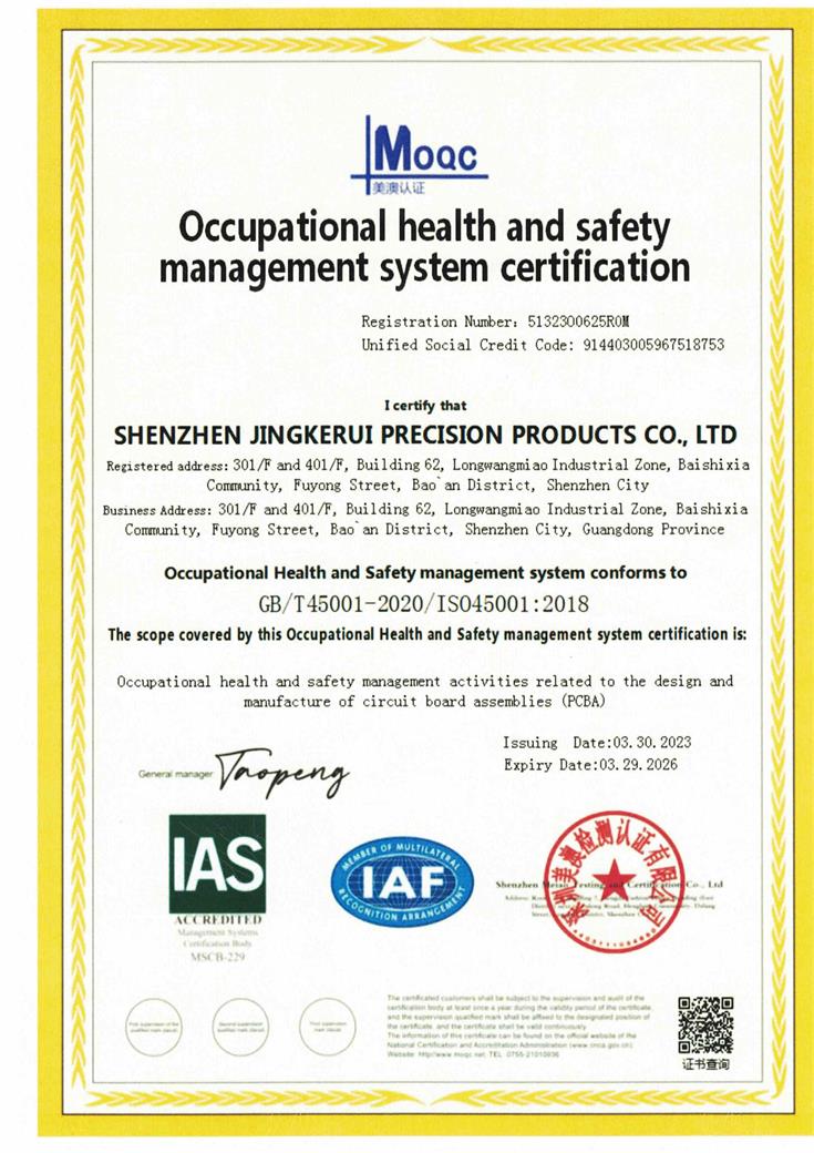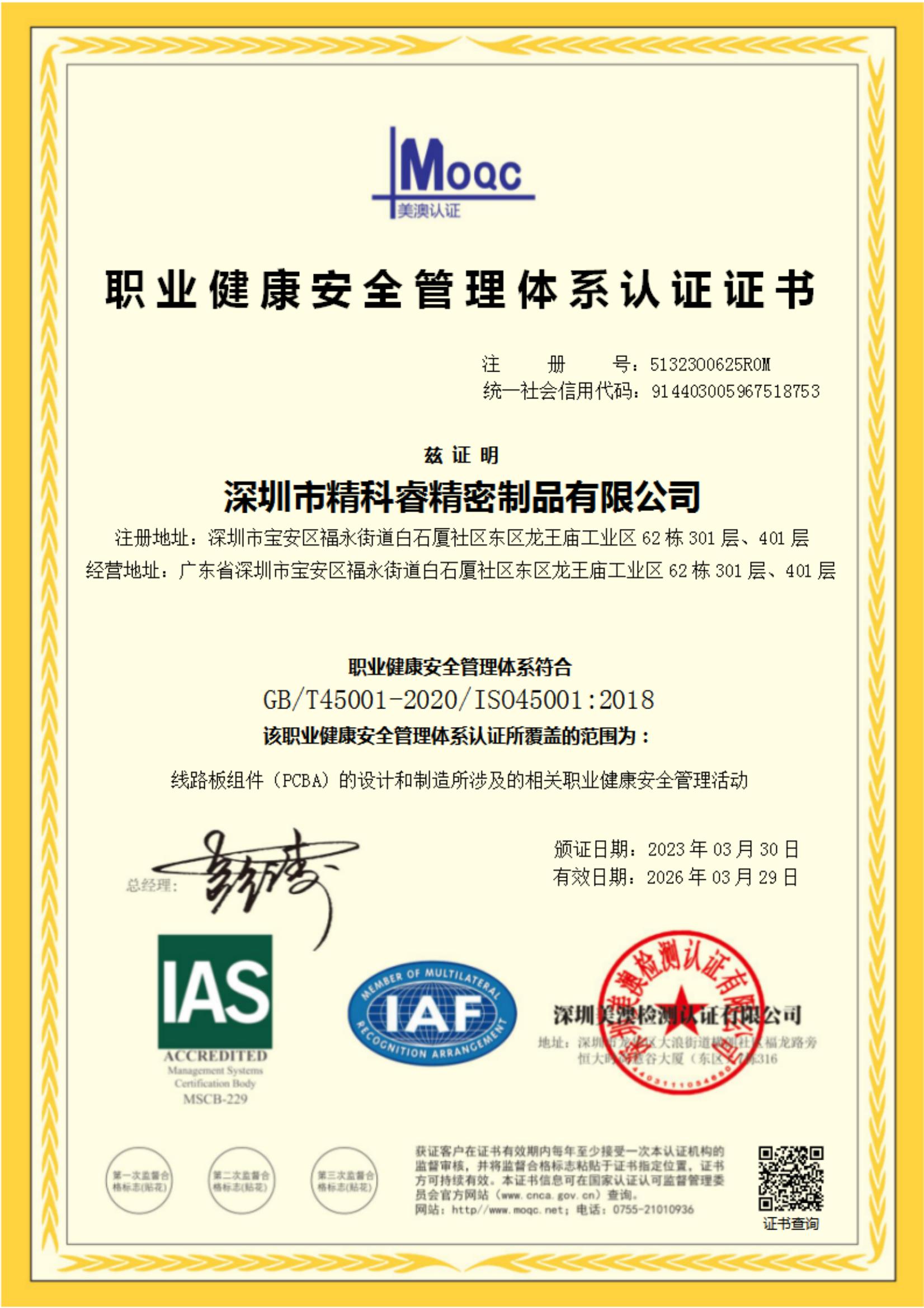 ISO 45001:2018证书